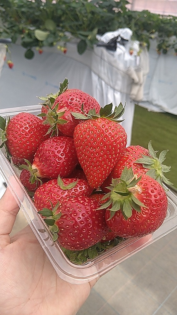 暖かくなってきて、春らしい陽気が続いていますね。先日、リフレッシュも兼ねていちご狩りに行ってきました。写真の通り、真っ赤でつやつやのいちごがたくさん実っていました。